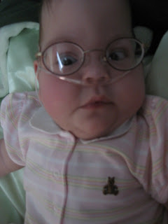 Therapies are going wonderful as usual! PT and OT have let us know that the work we do with Addison shows each week they come to see her. It's a nice compliment to hear however Addy is the one doing all of the work. I'm so happy that she's so receptive to the exercises we do with her. She's still not holding her head up however we are trying to do as much tummy time as we can to help her out. PT seems to think she'll be crawling before we know it! Speech is going quite well. Addison was able to have some watered down apple juice last week and seemed to like it. We give her 'tastes' via a medicine pacifier. Instead of dipping there is a little attachment on the end that hold up to two cc's of liquid. It's a nice controlled way of giving her a bit more than a dip of the pacifier. At the end of her last Speech appointment, Gail told me that we should mix up some rice cereal for Addy and do some dips this past Saturday. She wants Addy to try it out because this coming Wednesday she'll be giving her some rice cereal - WITH A SPOON! We're thrilled. We did the tastes on Saturday and Addy really seemed to enjoy them! Keep your fingers crossed that she does well!